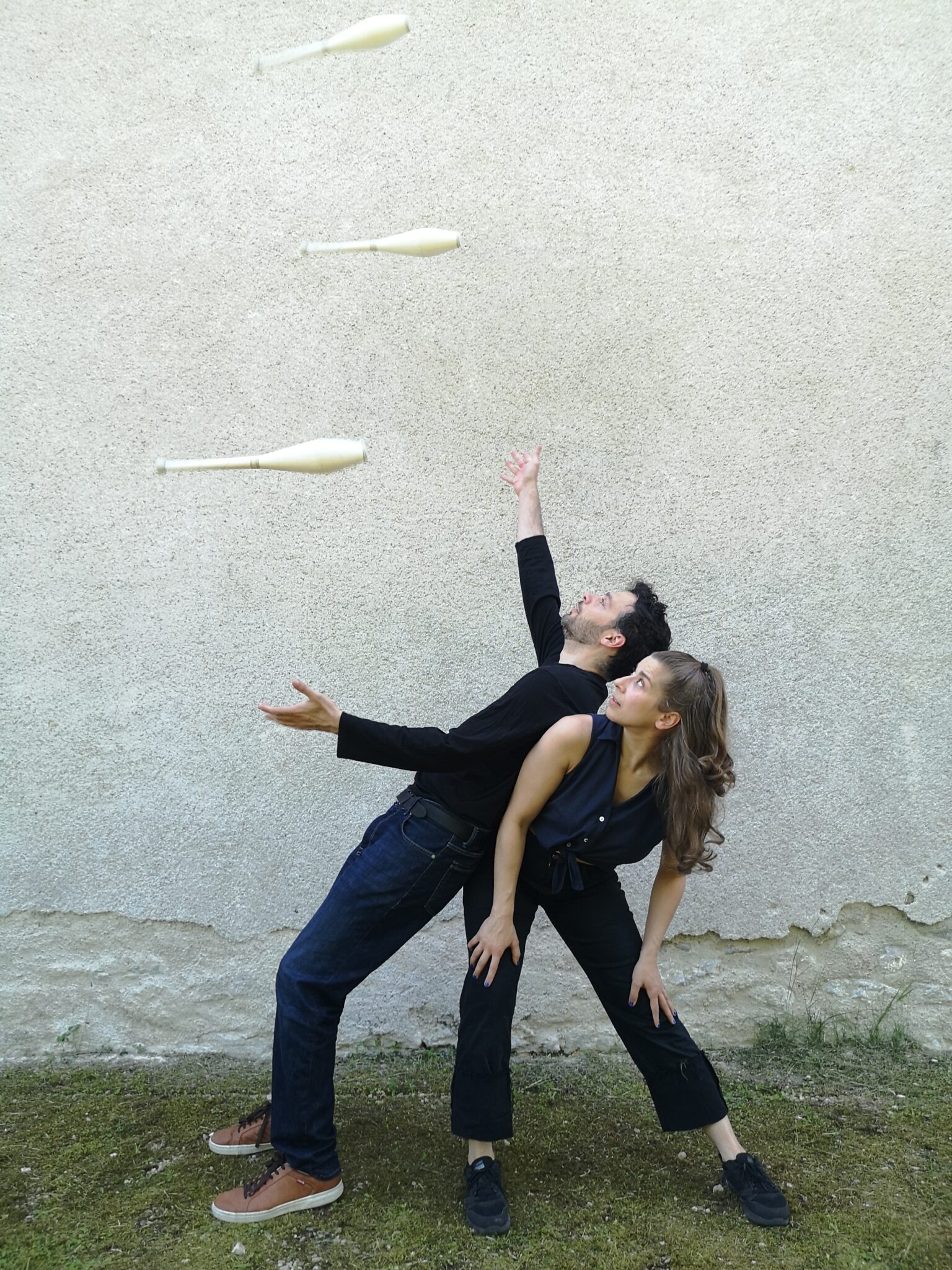 Chute est un projet né de la rencontre entre une danseuse qui jongle et un jongleur qui danse.